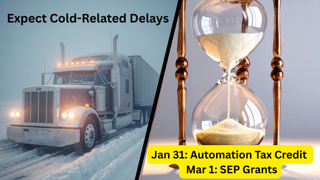 DEADLINE NEAR: Automation Tax Credit applications (up to 15% credit on approved automation equipment) must be submitted by Jan 31, 2026; Commerce tightened completeness rules (single 7-business-day fix window).